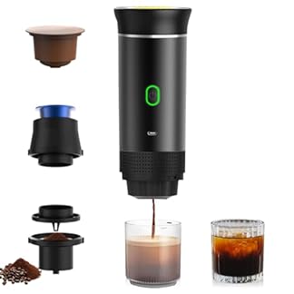€146,90Produkt kaufenNICEWAT Tragbare Kaffeemaschine mit Akku, 12V Auto Reise-Expressomaschine, Mini Mobile Kapselmaschine für Camping Reise, Selbstheizend, 8 Tassen, Kompatibel mit Nespresso-Kapseln