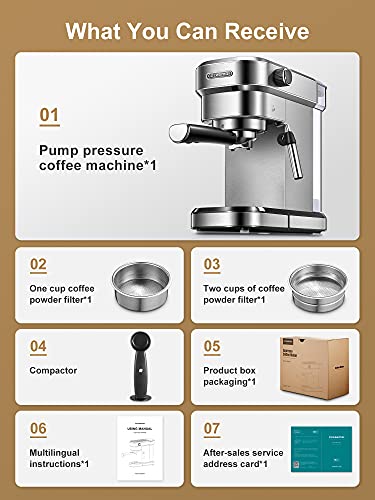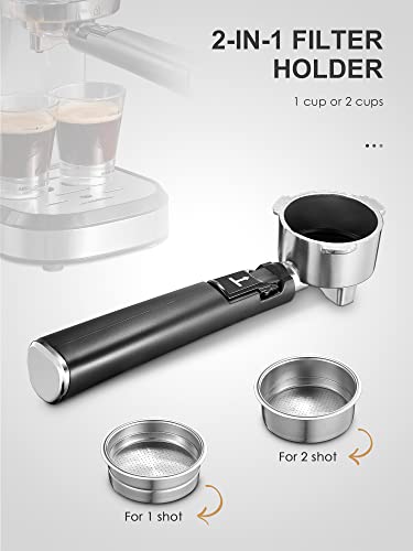 2 IN 1 PORTAFILTER: Der 2 in 1 Siebträger ist mit Doppelausgängen und zwei Filtern ausgestattet, um automatisch ein oder zwei Espresso-Shots zu brühen. Das Sieb ist herausnehmbar. Filtersiebeinsätze sind aus lebensmittelechtem Edelstahl und spülmaschinenfest.