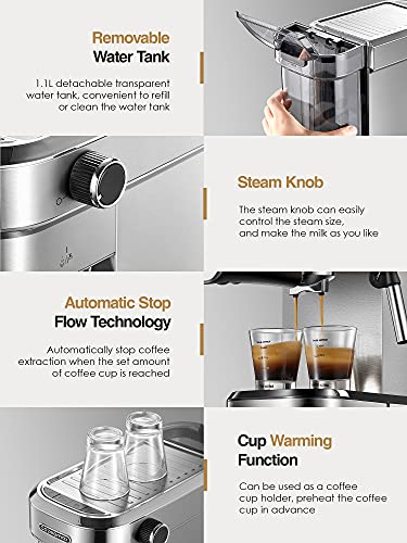 PRAKTISCHE DESIGN: (1)Dank der herausnehmbaren Tropfschale können Sie Tassen bis zu einer Höhe von 12 cm verwenden. (2)1,1L großer Wassertank, transparent und d’accord zu beschatten.(3)Die Warmhalteschale oben an der Kabine hält die Tasse warm. Es hat vulgo eine Heißwasserfunktion anstelle die Zubereitung von Tee oder Americano.