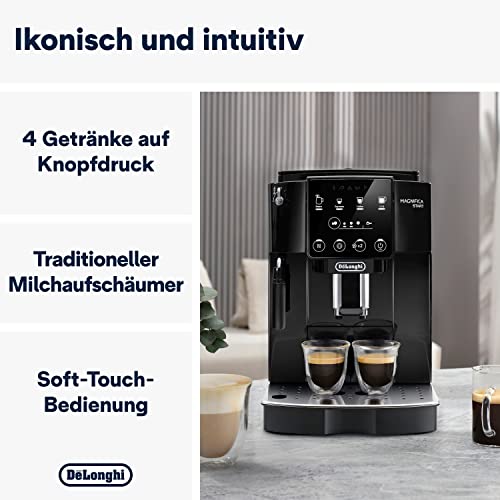 De’Longhi Magnifica Start ECAM222.20.B, Kaffeevollautomat mit Milchaufschäumdüse, für Cappuccino, mit Espresso-Direktwahltase und 2x Espresso Funktion, 13-stufiges Kegelmahlwerk, 1450 W, Schwarz