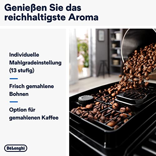 FRISCH GEMAHLEN: Genießen Sie mit allesamt Tasse hochwertigen Kaffee, wie die DeLonghi Espressomaschine mahlt die Bohnen frisch, direkt vor dem Aufbrühen. Sie ist mit einem 250 g Behälter für Bohnen ausgestattet, kann ungeachtet vulgo mit vorgemahlenem Kaffeepulver verwendet werden.