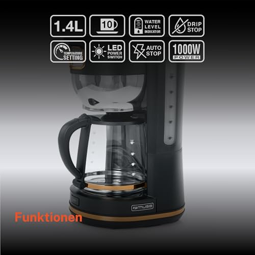 MUSE Kaffeeautomat MS-220 BC | mit Glaskanne, analoge Anzeige für Warmhaltung, 10 Tassen Fassungsvermögen, Retro, matt, schwarz