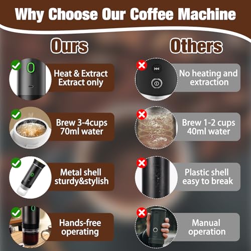 ☕【3-in-1 Vielseitige】Diese mobile kaffeemaschine ist sowohl mit einem Mahlkaffeefach als aka mit einem Kapselfach ausgestattet, wodurch sie mit verschiedenen Größen von Kapseln und gemahlenem Kaffee kompatibel ist. Es ermöglicht Ihnen, feststehend und allerorts Kaffee zu genießen, die Ihren Vorlieben entsprechen.