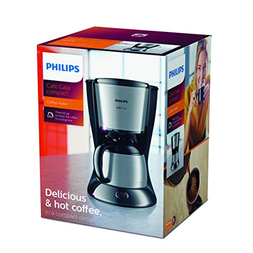 Philips Gaia Therm Kompakt HD7542/20 Filterkaffeemaschine mit Thermo-Kanne, schwarz/metall
