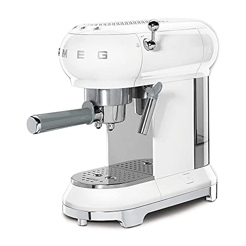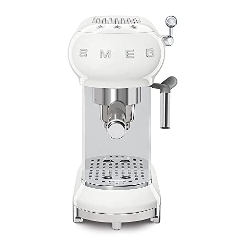 Smeg, ECF01WHEU Manual Espresso -Maschine, Cappuccino -System, Thermoblock, große Tassengehäuse und Doppelkaffeefunktion, 1 l Wassertank, kompakte Abmessungen, 1350W, Weiß