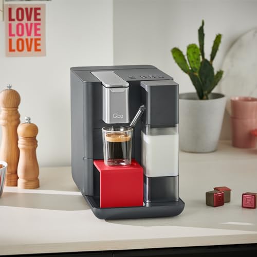 Tchibo Qbo MILK MASTER Premium Kapselmaschine inkl. 16 recyclebare Qbo Kapseln für Cappuccino, Espresso, Caffè Crema, Milchschaum auf Knopfdruck mit abnehmbarem Milchtank 300ml, Lipstick Red